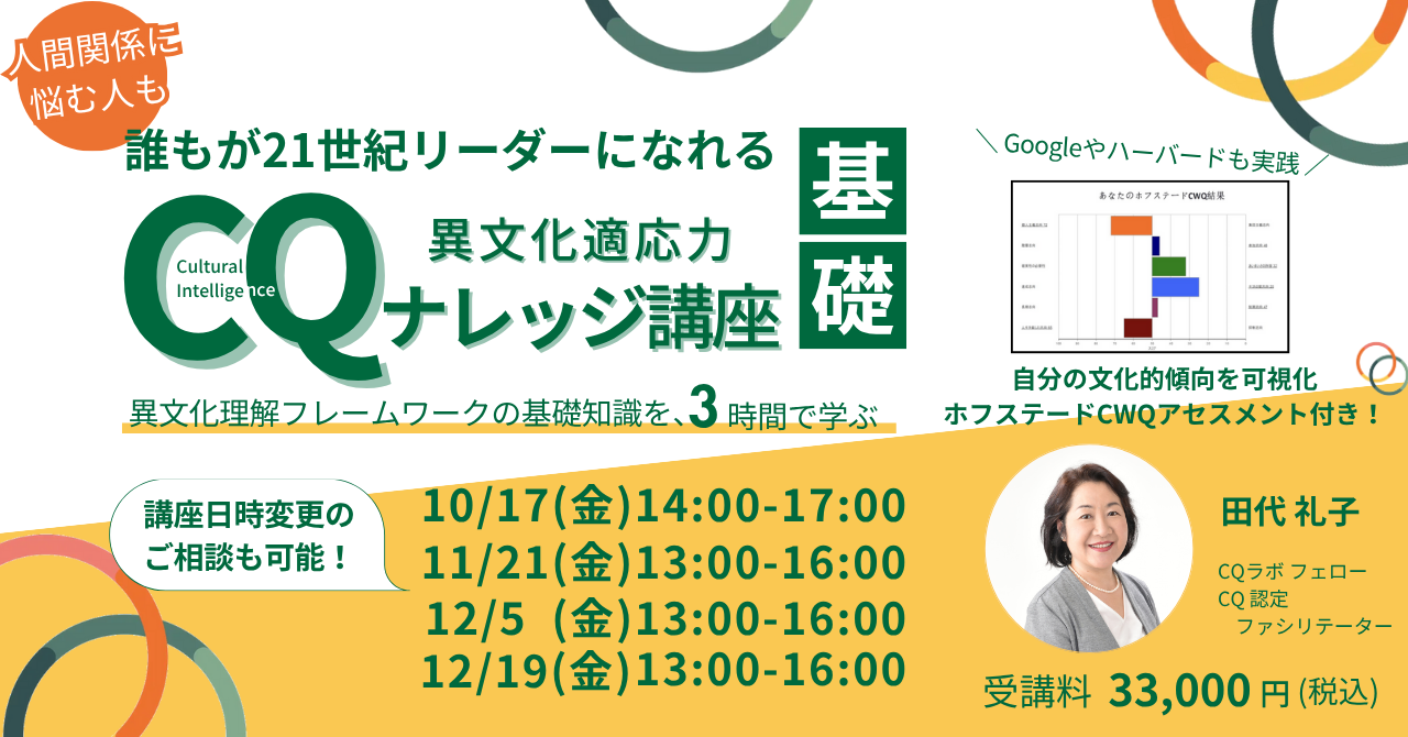 CQ(異文化適応力)ナレッジ講座 基礎 2025/10~ 随時開催!