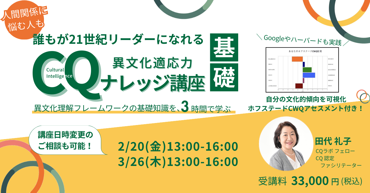 CQ(異文化適応力)ナレッジ講座 基礎 2026/2~ 随時開催!