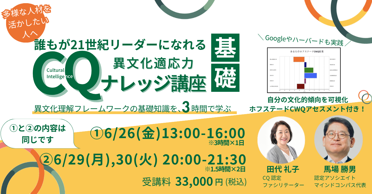 CQ(異文化適応力)ナレッジ講座 基礎 2026/6開催!