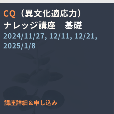 CQ(異文化適応力)ナレッジ講座 基礎 2024/11~ 随時開催!