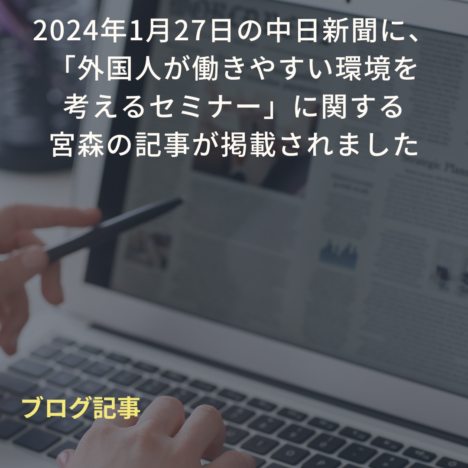 2024年1月27日の中日新聞に、 「外国人が働きやすい環境を 考えるセミナー」に関する 宮森の記事が掲載されました